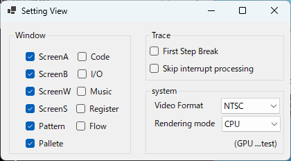 - In the “Window” tab of the Settings View, check the screen you want to display, and it will appear.